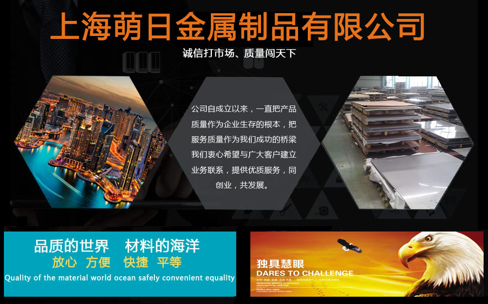 上海萌日金屬制品有限公司一直致力于為國內(nèi)各大中型國有企業(yè),外資企業(yè),民營獨資企業(yè),模具制造企業(yè),機械加工企業(yè),石油化工企業(yè)及器械企業(yè)等供應(yīng)各種特種鋼材,進口/國產(chǎn)鋁合金,不銹鋼,合金結(jié)構(gòu)鋼,42CrMo鋼板,35CrMo鋼板,40Cr鋼板,合金圓鋼,中厚板,鍛件,法蘭,鋼帶,軸承鋼,易切鋼,不銹圓鋼,合金管,矩形鋁管,無縫鋁管,鋁管,工業(yè)鋁管進口及國產(chǎn)方胚/鋼錠/鋁錠,應(yīng)用于機械,機電,造船,工程,煤礦,紡織,電力,鍋爐, 汽車工業(yè)等各個領(lǐng)域。我公司可以根據(jù)客戶對特殊材料的要求進行材料和產(chǎn)品的定制,可按ISO,ANSI,JIS,DIN,GB等標準定制,我們將本著"誠實守信,合作共贏,長期合作"的理念與新老客戶一起進步發(fā)展。
